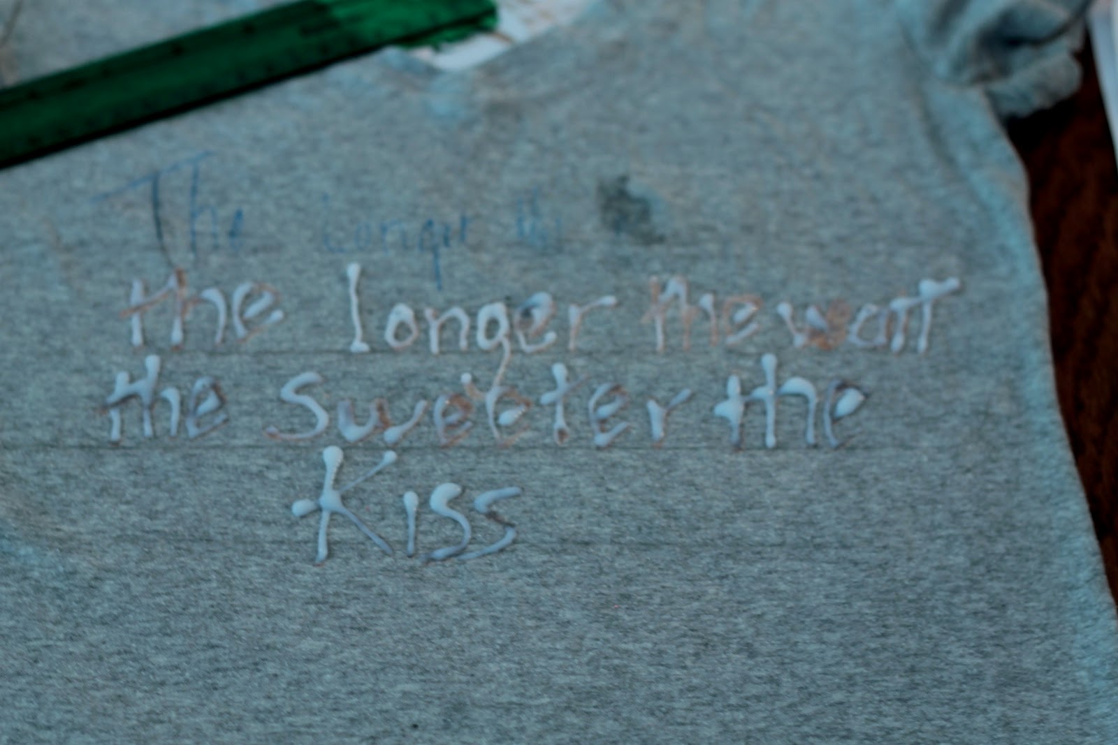 I let the bleach sit on mine too long so it bled. One of my "the" looks like "me" because of it. Katy's bled through the foil to the back of her shirt so she has a hazy peachy look going on. Thankfully it looks cute anyway. Rachie, the artist's, turned out perfectly. In fact, I saw her later that day wearing it and it was SUPER cute.